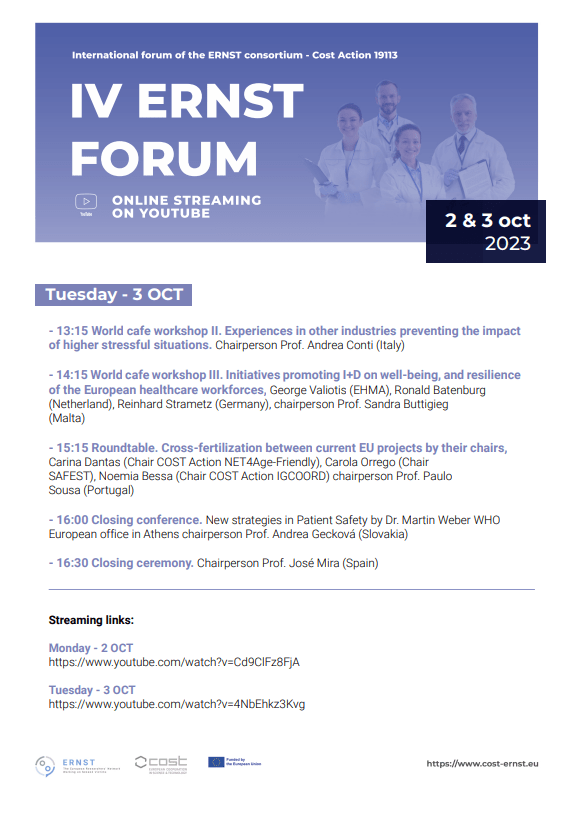 The panel on new strategies in patient safety will be chaired by prof. Andrea Madarasová Gecková and one of the panelists is our colleague PhDr. Ivana Skoumalová, PhD., which will exist about the qualitative research on the psychological safety of health workers in Slovakia, which we carried out last year.